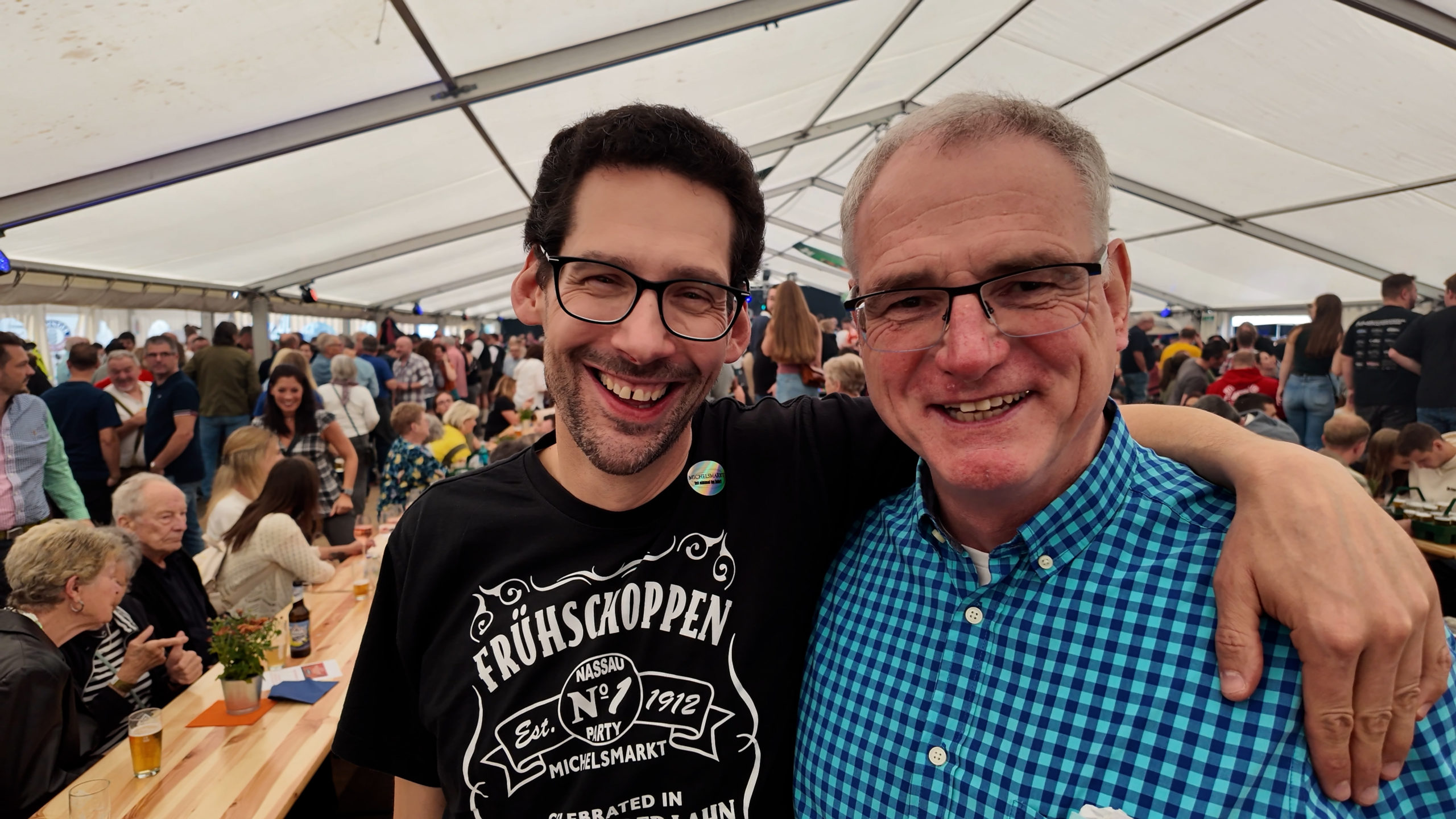 Bereits am Vormittag füllte sich das Zelt mit fröhlichen Besuchern. Wo sonst politische Debatten geführt werden, lagen sich am Montag alle in den Armen – darunter zahlreiche bekannte Gesichter aus der Region. Nassaus Stadtbürgermeister Manuel Liguori war ebenso mittendrin wie seine Amtskollegen Uwe Bruchhäuser, Matthias Lammert, Lutz Zaun, Oliver Steinhäuser, Heike Pfaff und Udo Rau, der an diesem Tag sogar noch seinen Geburtstag feiern durfte.