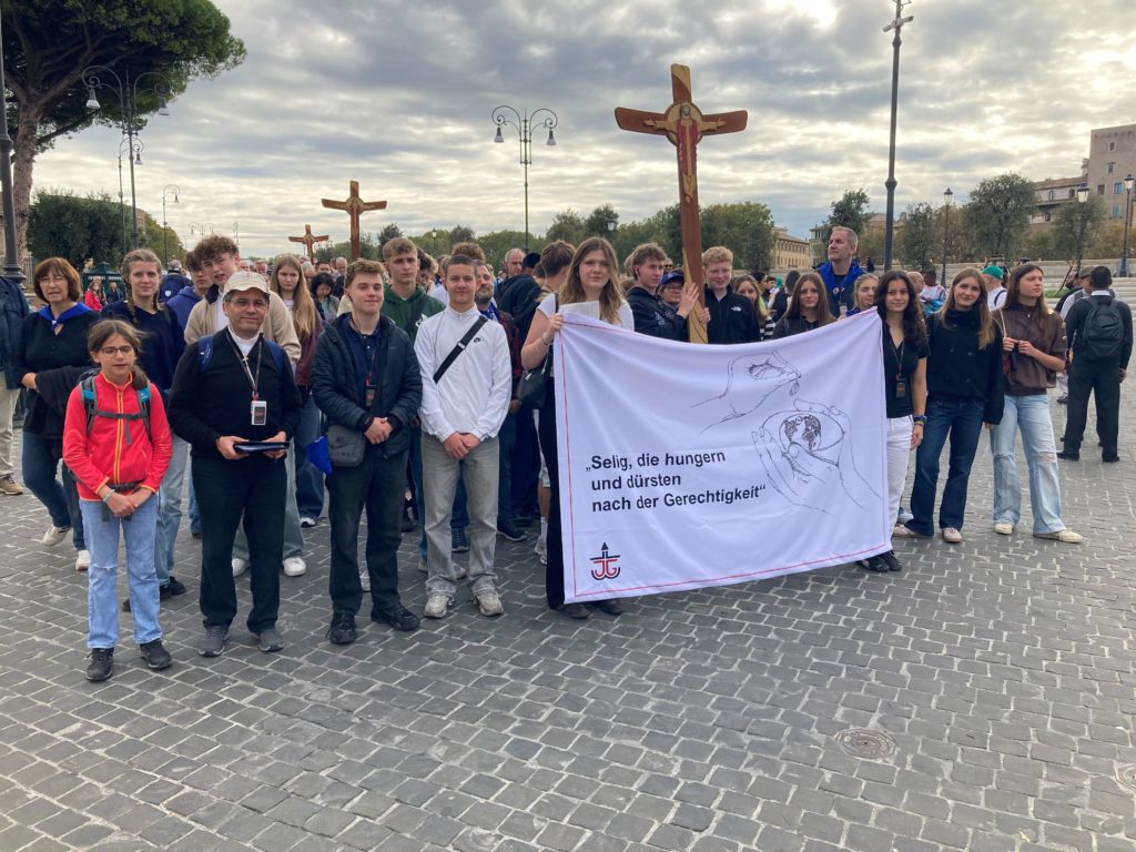LAHNSTEIN|ROM In den Herbstferien machten sich 35 Schülerinnen und Schüler des Johannes-Gymnasiums Lahnstein gemeinsam mit sieben Lehrkräften und Schulleiter Rudolf Loch (und Familien) auf eine ganz besondere Reise: eine siebentägige Wallfahrt der Gemeinschaft Christlichen Lebens (GCL) nach Rom. Geleitet wurde die Gruppe vom geistlichen Leiter der GCL, Diakon Benno Lukitsch. Bereits die Anreise war ein kleines Abenteuer: Über Nacht ging es im Reisebus in die Ewige Stadt – und dort erwartete die Gruppe ein intensives, aber unvergessliches Programm. „Als wir am nächsten Morgen aus dem Bus stiegen und die ersten Sonnenstrahlen auf die Kuppel des Petersdoms fielen, war die Müdigkeit sofort vergessen“, erzählte Schülerin Laureen Budka begeistert.