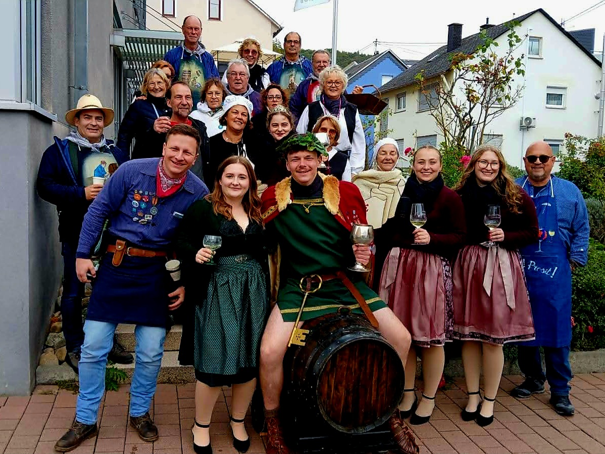 Zum Abschluss des Empfangs wurde auf die Freundschaft zwischen beiden Städten angestoßen – mit Wein aus der Region und im Beisein von Wein- und Rosenkönigin Ronja I. und Bacchus Jan I. mit ihrem Gefolge. Die beiden verbindet seit diesem Jahr etwas Besonderes mit Braubachs französischer Partnerstadt, denn sie haben im Sommer dort geheiratet, getraut von Bürgermeisterin Nadège Naze persönlich.