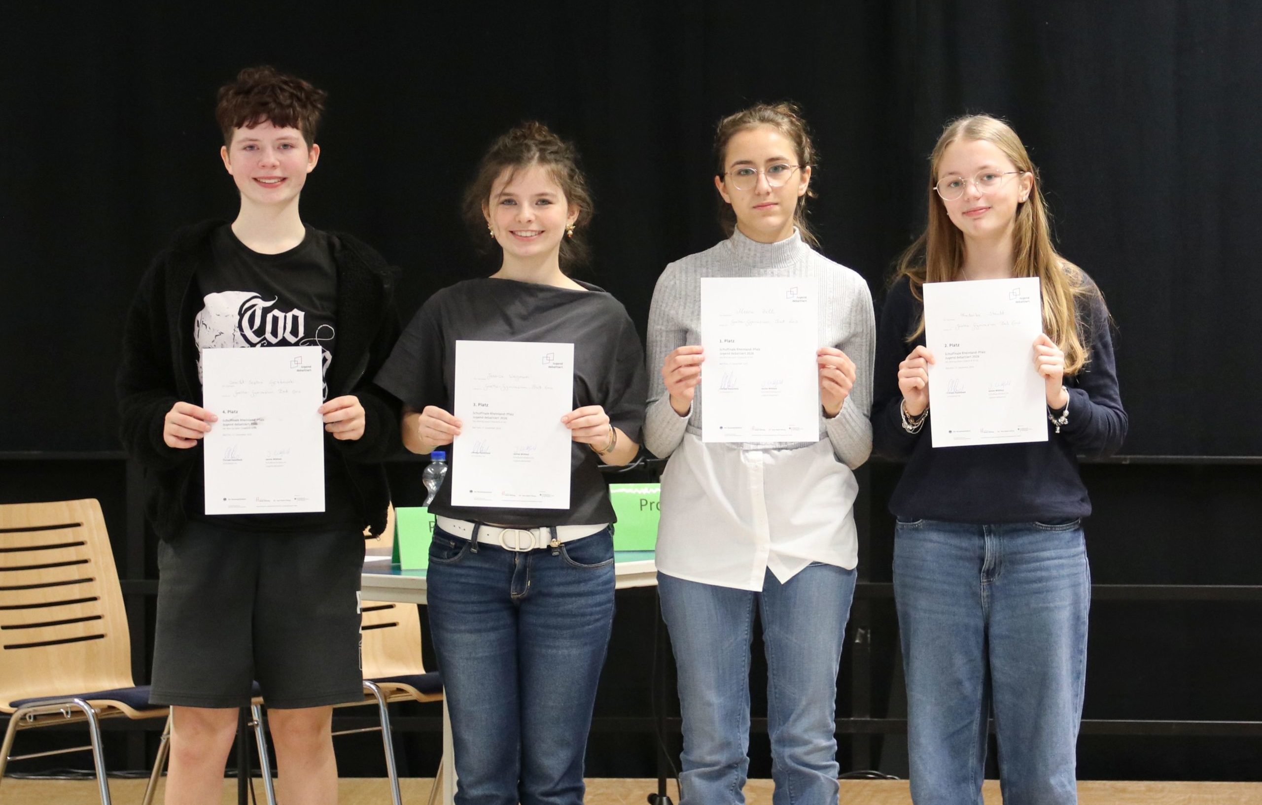 Die Erst- und Zweitplatzierten Meena Zell und Frederika Staudt werden sich Ende Januar 2026 im Regionalwettbewerb Jugend debattiert erneut beweisen und gegen Debattantinnen und Debattanten anderer Schulen antreten (Text: Janine Wittfeld, Schulkoordinatorin Jugend debattiert).
