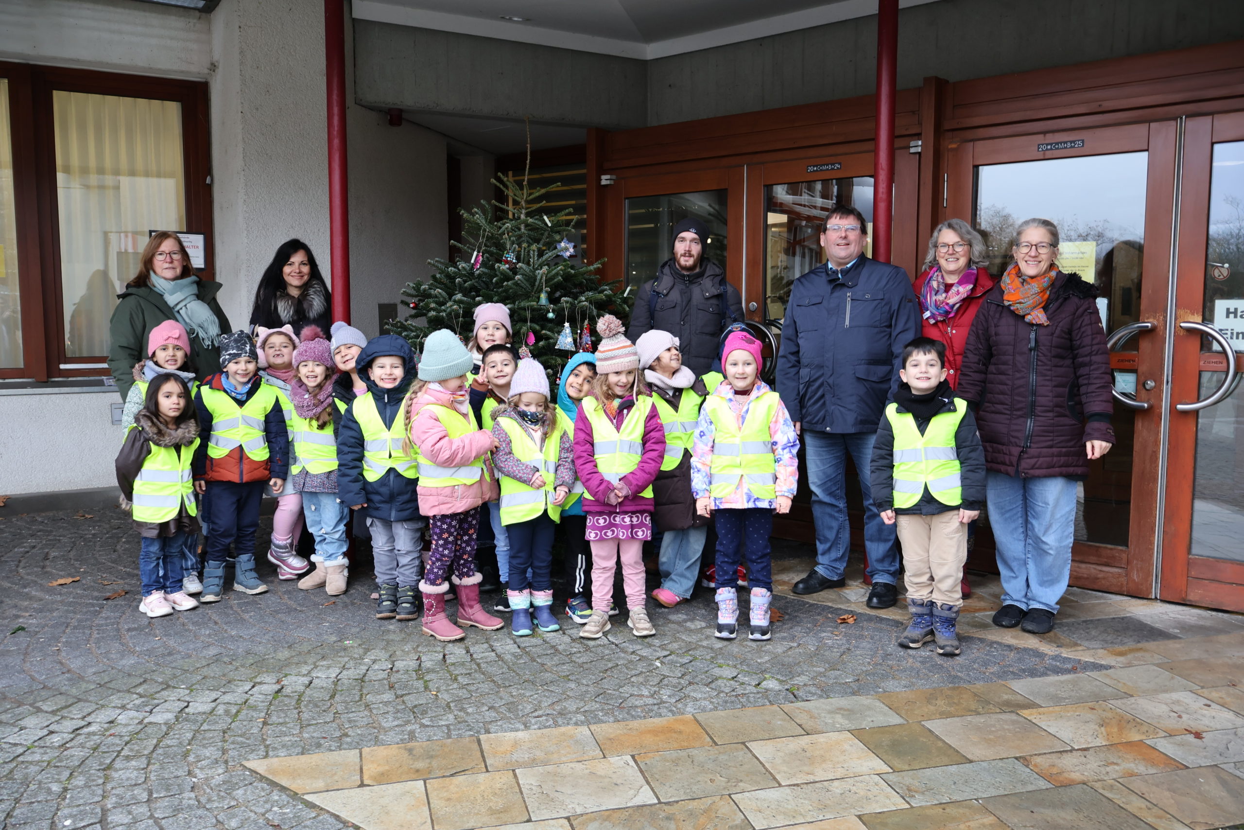 Kita-Kinder schmücken Weihnachtsbaum vor dem Kreishaus