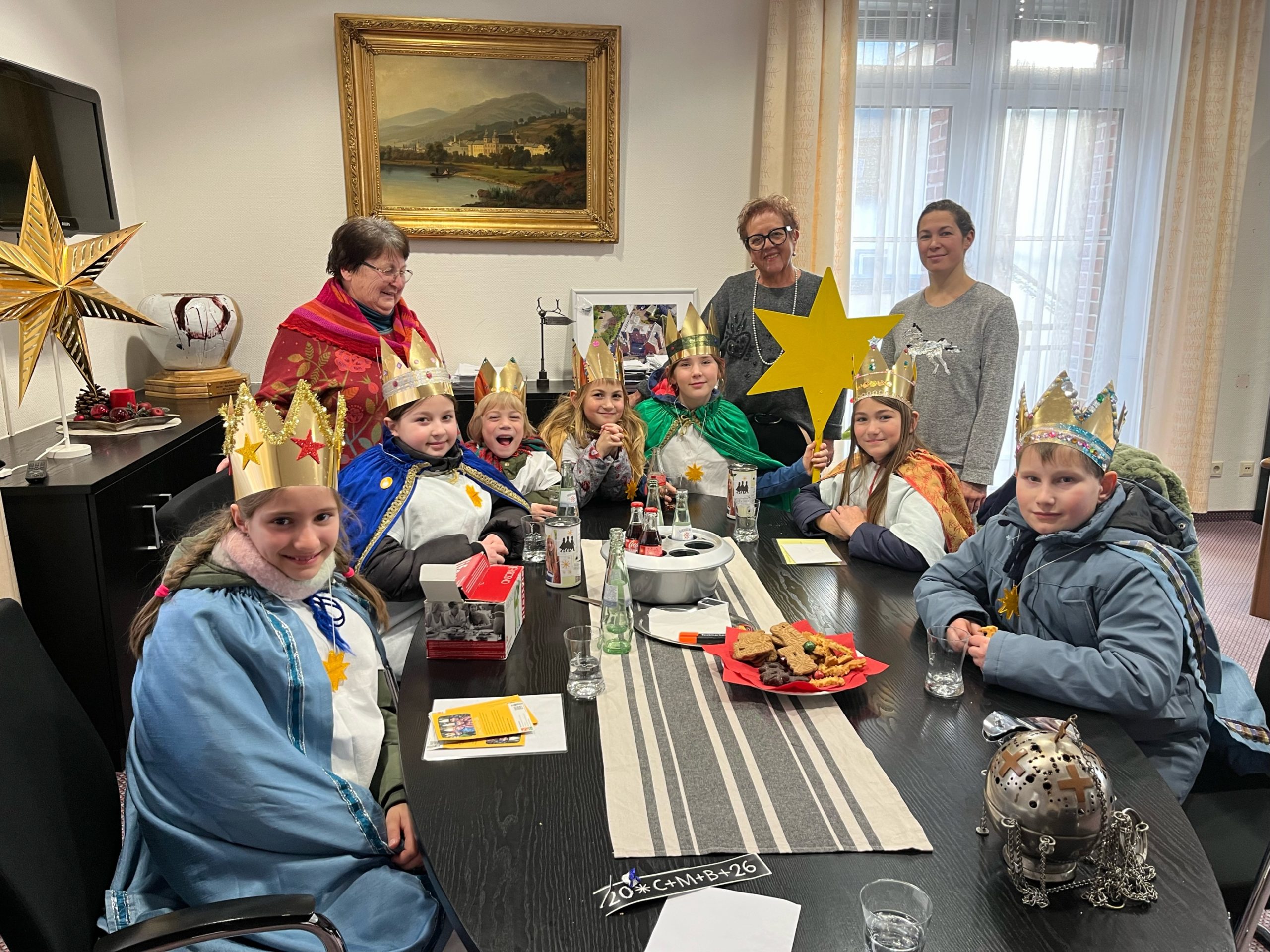 Beigeordnete Gisela Bertram begrüßte die Kinder, die in Begleitung von Regine Canz und Frau Dietzen-Krämer gekommen waren und lobte sie für ihr Engagement für die Kinder der Welt, besonders für Mädchen, deren Schulbesuch finanziell unterstützt werden soll. Auch das Rathaus verließen die Bad Emser Sternsinger nicht ohne eine Spende, die dann gemeinsam mit den anderen Gaben ärmeren Kindern zugute kommen soll (pm Verbandsgemeinde Bad Ems-Nassau).