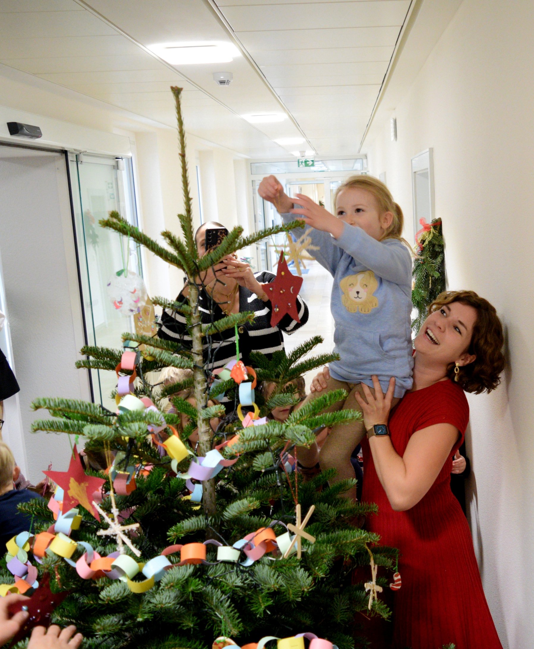 Weihnachtsfeeling in Diez: Kinder schmücken den Christbaum in der Verwaltung