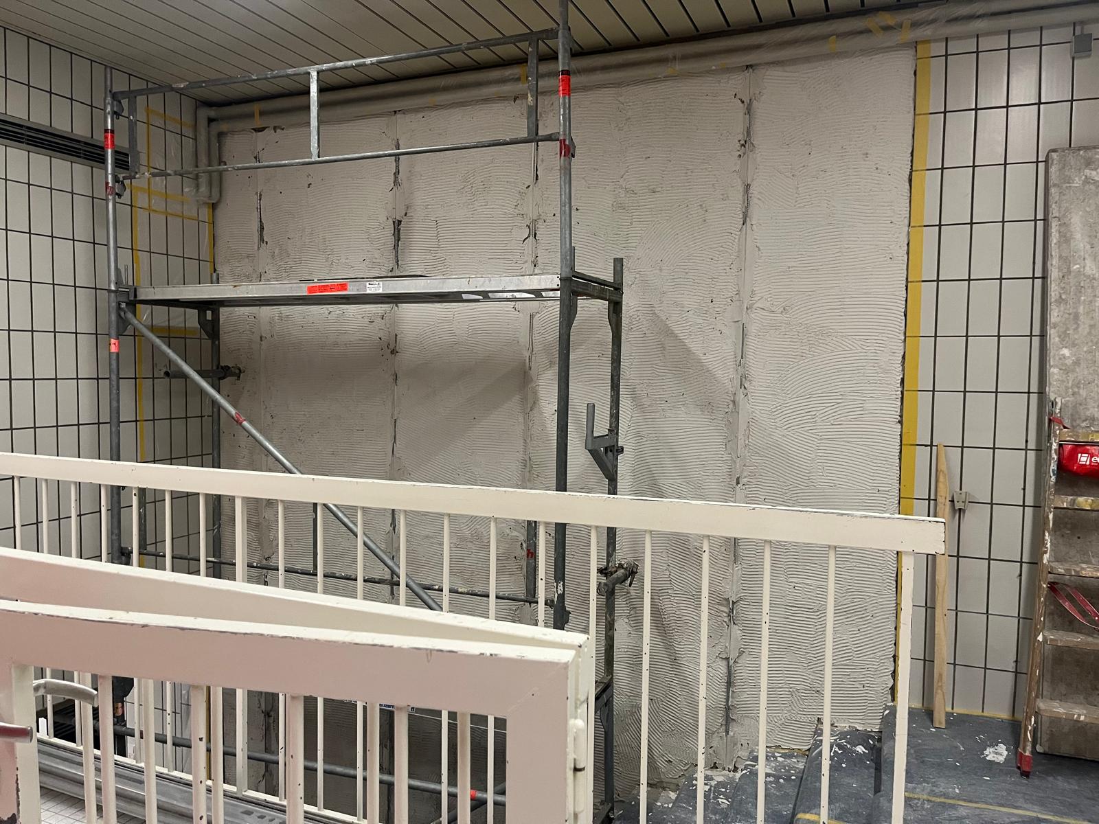 Seit Montag, dem 17. November 2025, führt ein Fachbetrieb die notwendigen Sanierungsarbeiten durch. Dabei werden in den Bereichen, in denen zuvor Fliesen angebracht waren, mehrere Putzschichten aufgetragen. Diese Arbeiten stellen sicher, dass die betroffenen Flächen langfristig stabilisiert und sicher genutzt werden können.